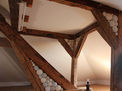 The wooden beams of the attic intersect to form intriguing geometrical patterns. The goal is to imbue the space with a sense of time, fill the void with air, define shape with form, mold form with mass, and guide soft cylindrical cushions to nestle between the sharp angular lines, creating a tranquil ambiance.
